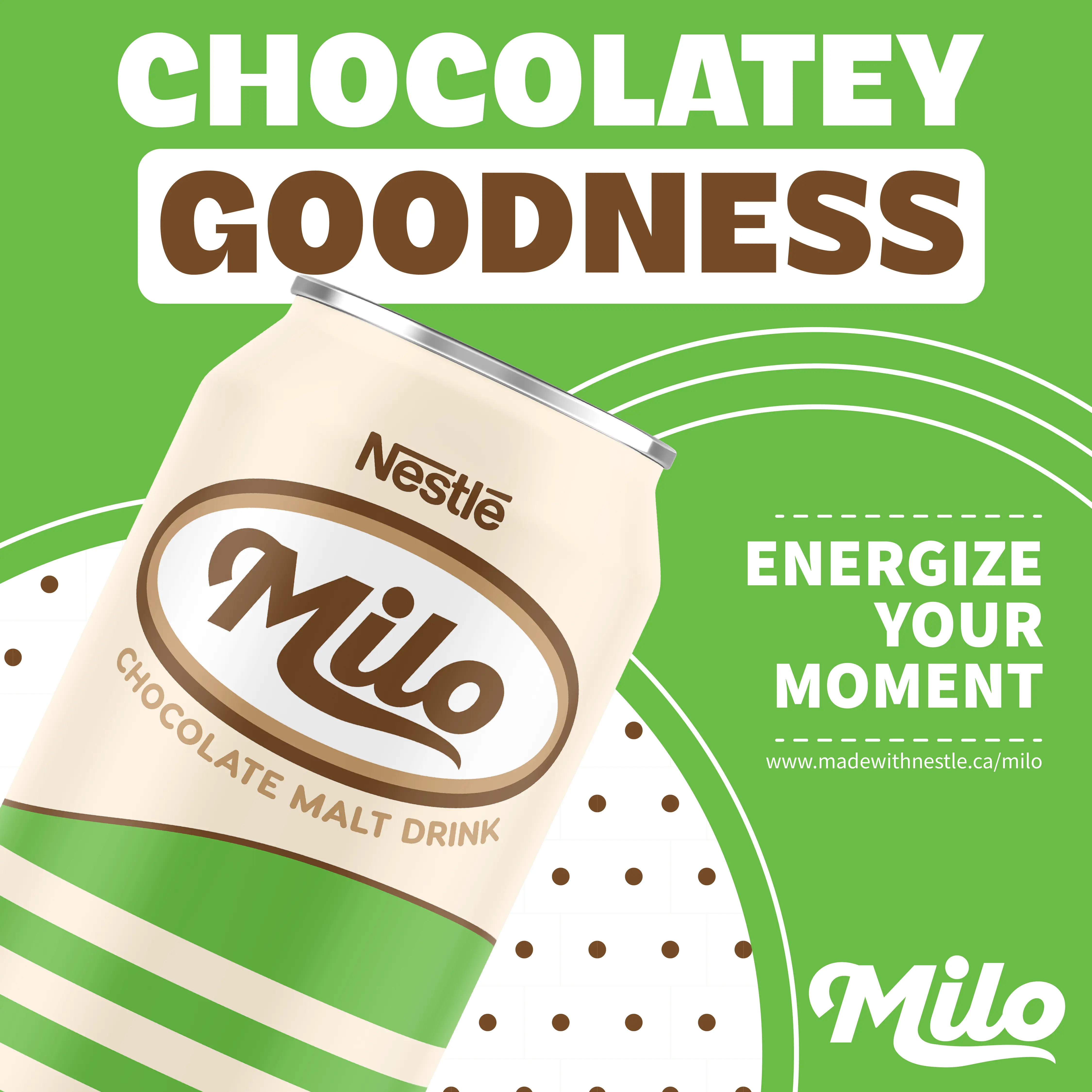 For these Instagram posts, I experimented with the layout to create a visual hierarchy, guiding viewers' attention to key elements. I used bold, stylized heading text to capture attention and convey a vibrant feel, emphasizing the brand's energy drink aspect. I also included a call to action directing viewers to the Milo website.