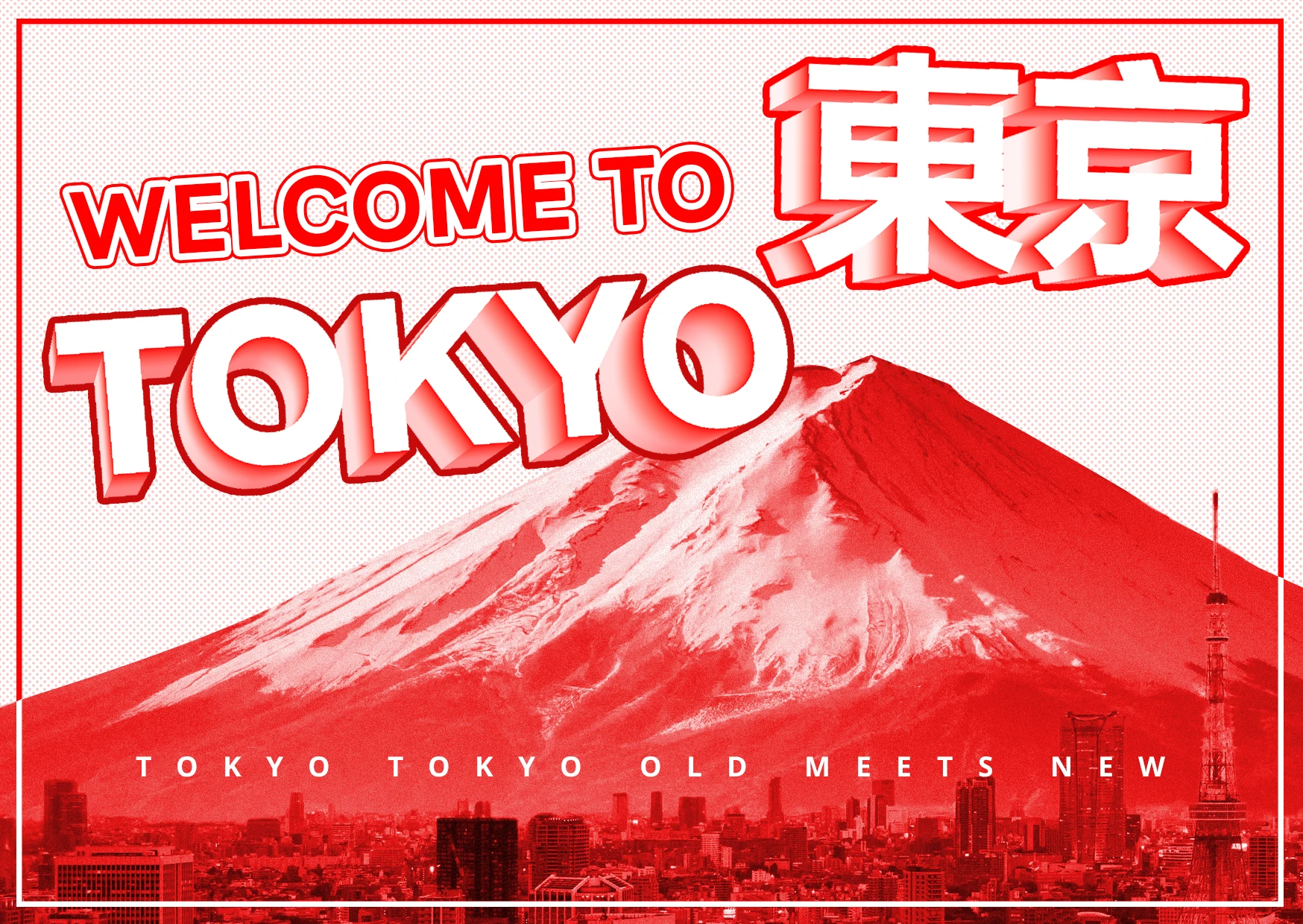 I chose the vibrant city of Tokyo, aiming for a grainy halftone aesthetic with a monochromatic red color palette. The imagery I selected highlights what I consider to be Tokyo's iconic and 'touristy' cultural elements, which, in my opinion, give the city its unique charm.